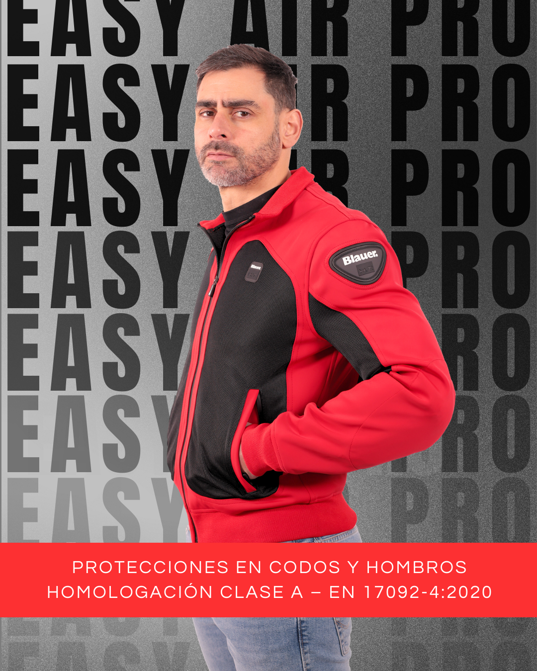 Cada prenda utiliza materiales avanzados, resistentes al viento, la abrasión y el agua, incorporando protecciones certificadas en hombros, codos y espalda.