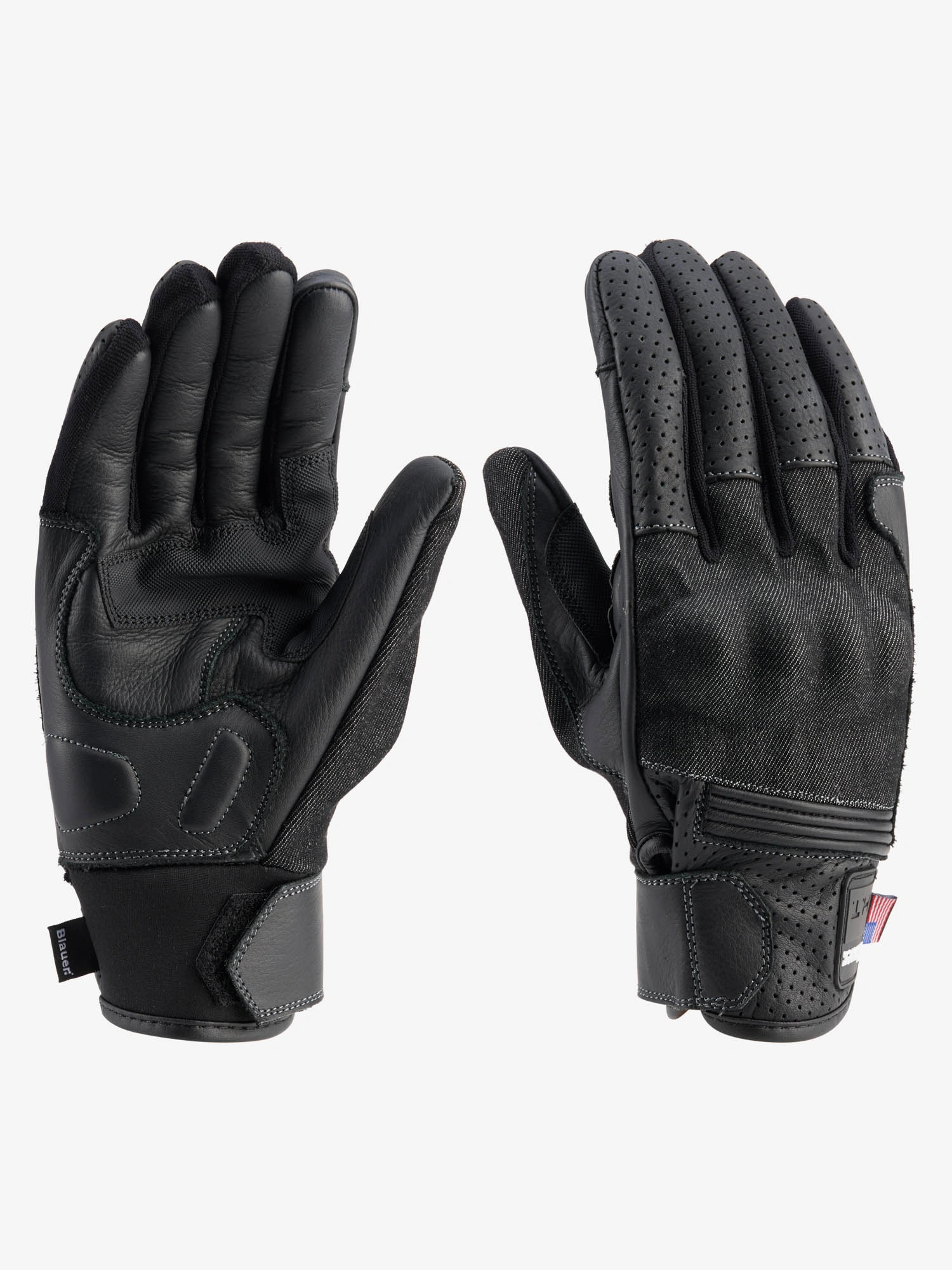 Guante corto con paneles perforados en dedos y puño; moldes de TPU en los nudillos; cierre de correa en el puño; forro interior de poliéster suave. Composición: 60 % piel de napa, 30 % poliéster, 10 % nailon.