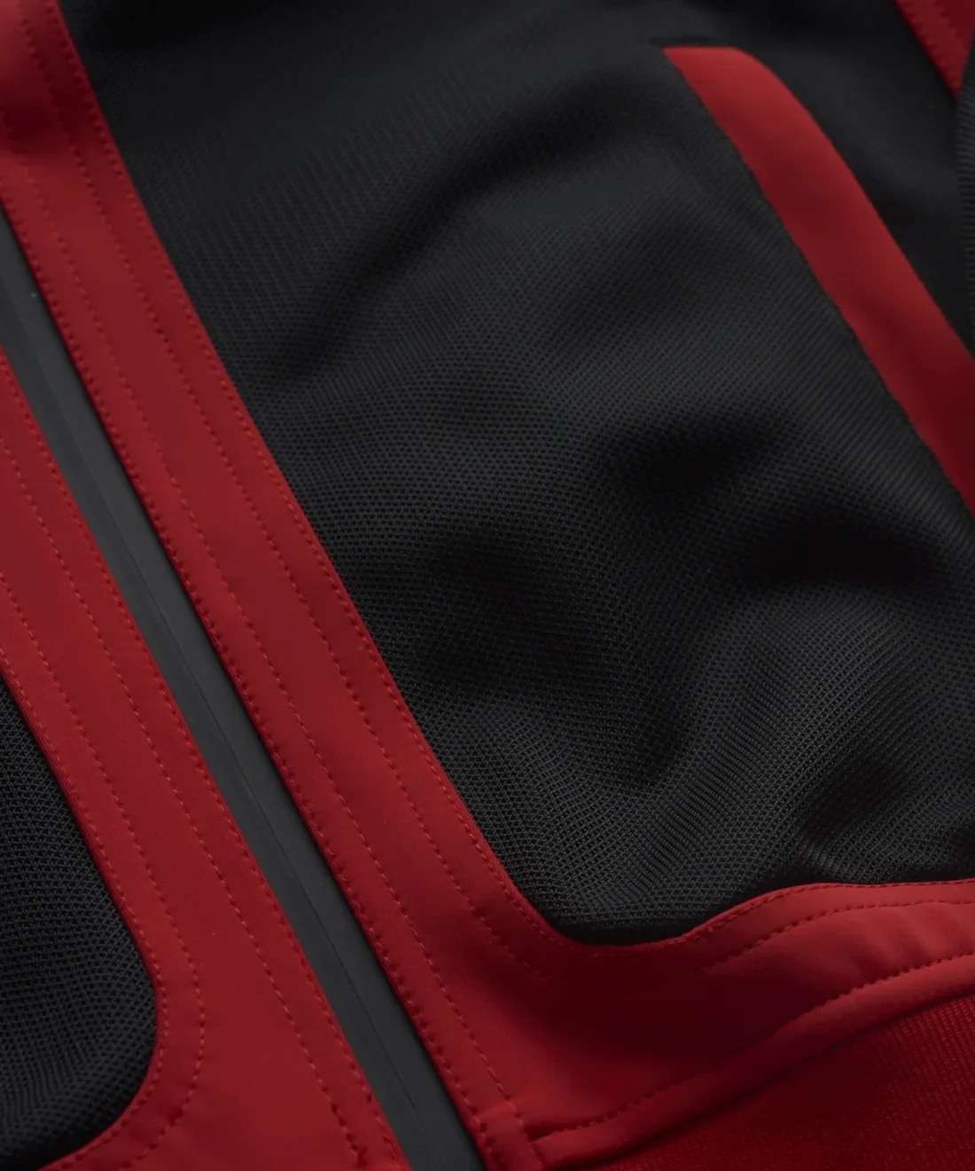Está confeccionada con tejido softshell de alto rendimiento (nylon/lycra) en su exterior, mientras que su membrana interior cortaviento e impermeable permite una excelente transpirabilidad y retención térmica. Además, incorpora paneles de malla de poliéster en pecho, espalda y axilas, pensados para mejorar el flujo de aire en movimiento.