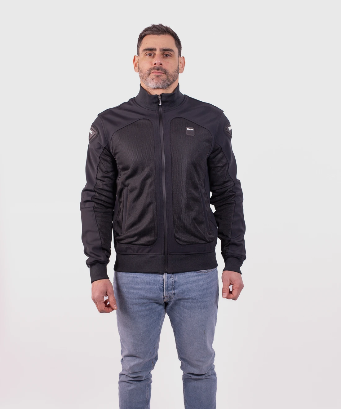 El diseño incluye bolsillos internos de malla para insertar protecciones en hombros, codos (incluidos) y espalda (no incluida). Los puños, cuello y cintura están realizados en tejido tipo jersey, para un ajuste cómodo y deportivo. Su cremallera frontal viene con cursor de bloqueo automático, evitando aperturas accidentales durante la conducción.