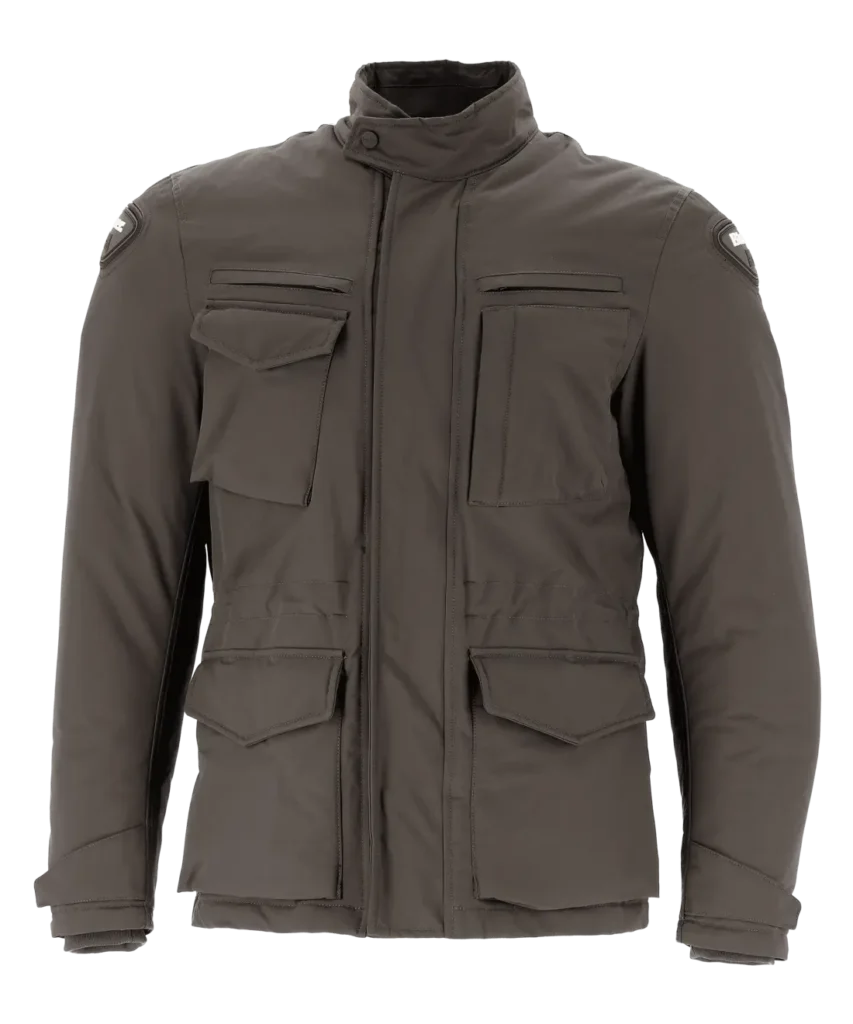 Incluye protecciones desmontables certificadas en codos y hombros, y espacio para añadir protección dorsal. El cierre frontal autoblocante, junto al cordón de ajuste en capucha y cintura, permite adaptarla a distintos entornos urbanos o ruteros.