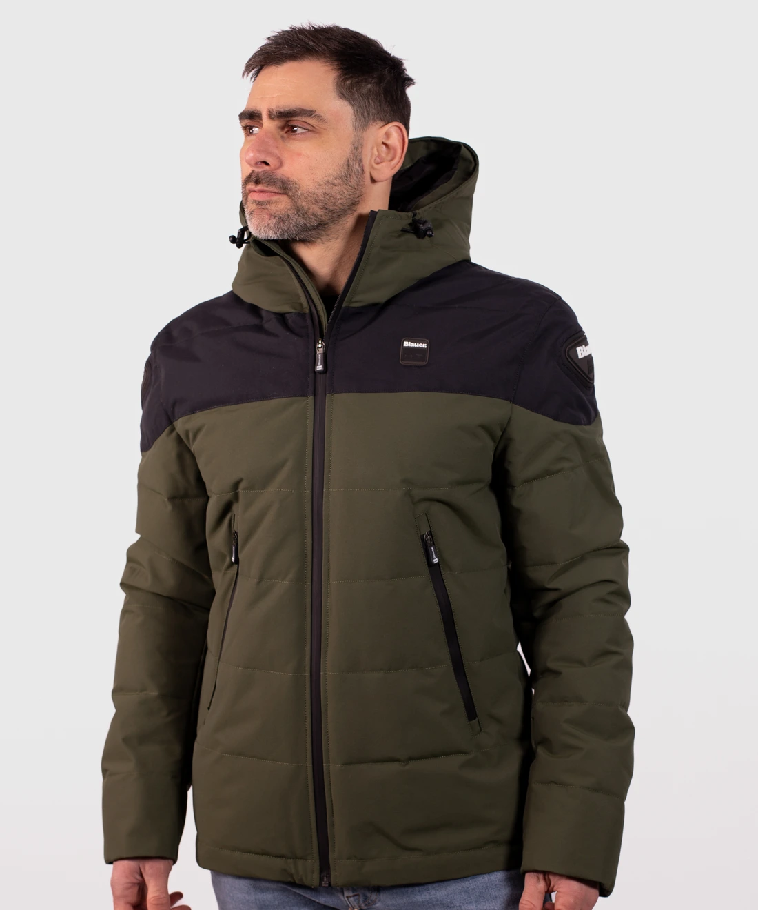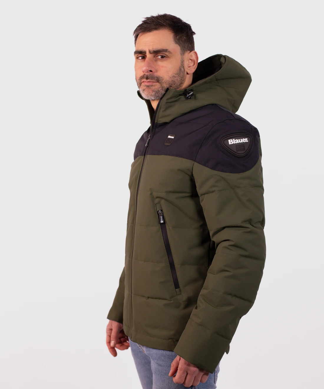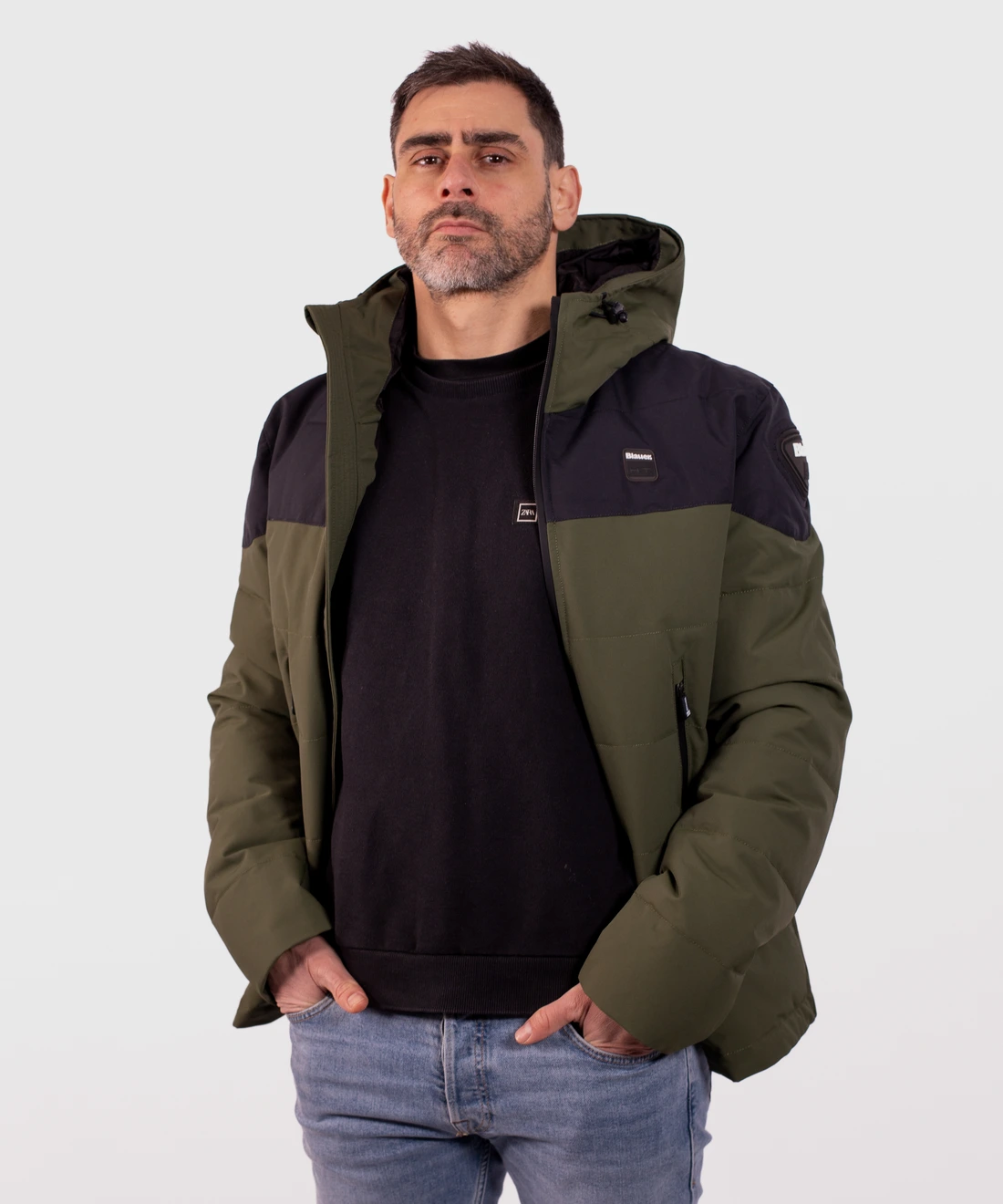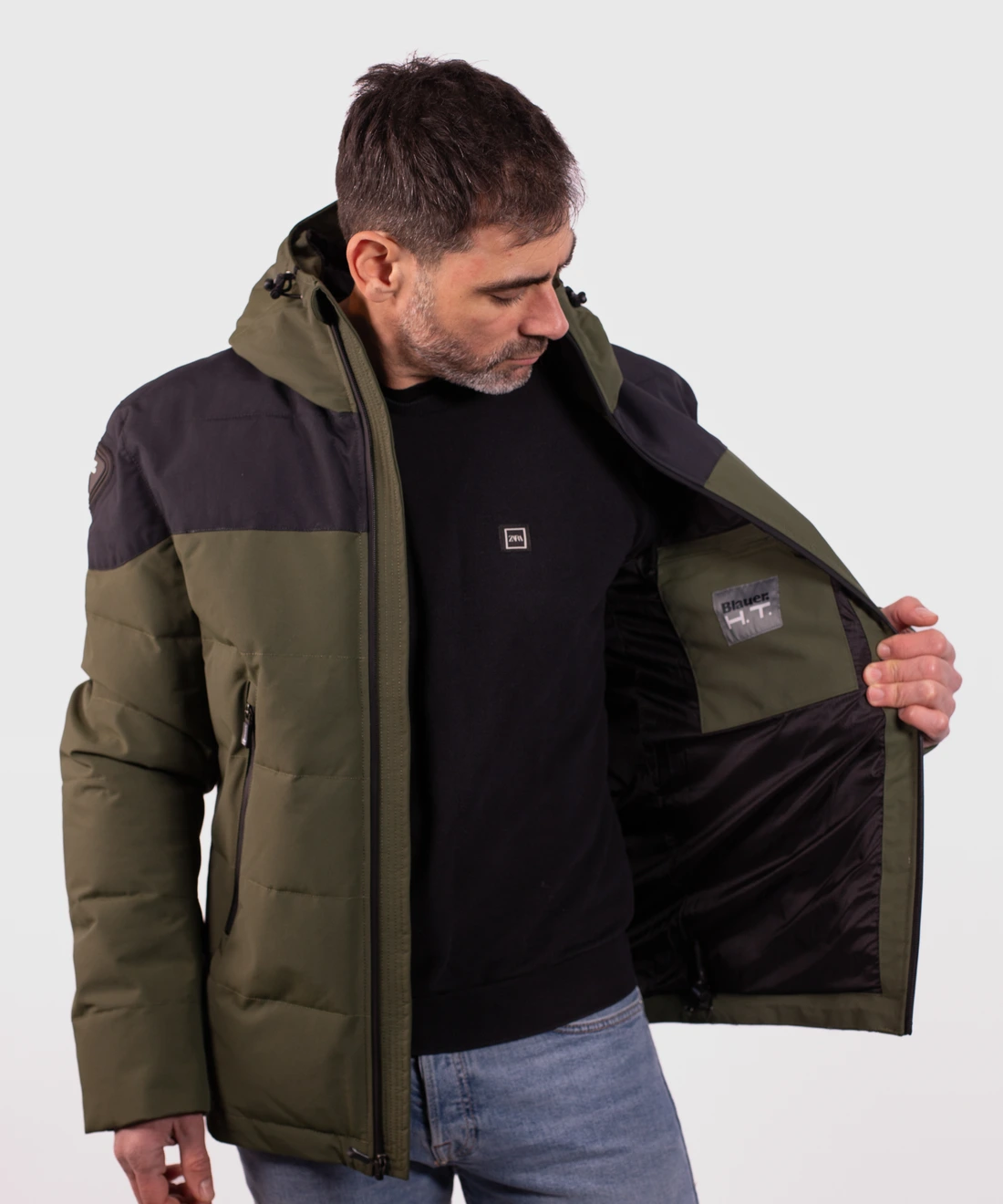 • Campera con capucha realizada en tejido externo hidrófugo de doble capa de nailon y ecofibra interna Dupont Sorona.